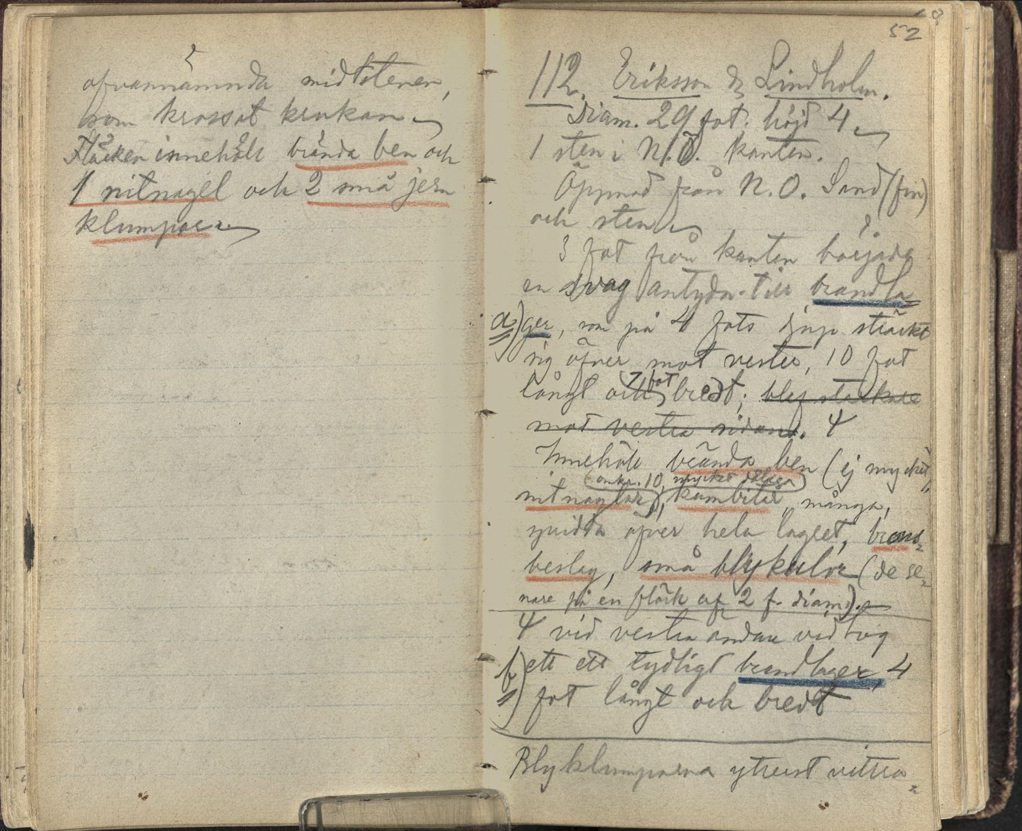 - Inre beskrivning: Brandlager, 1,2 × 1,2 m invid Bj 112 A - fynden sammanblandade med A. 1 keramikkärl i gränszonen mot A (Quelle: SHM MIS)