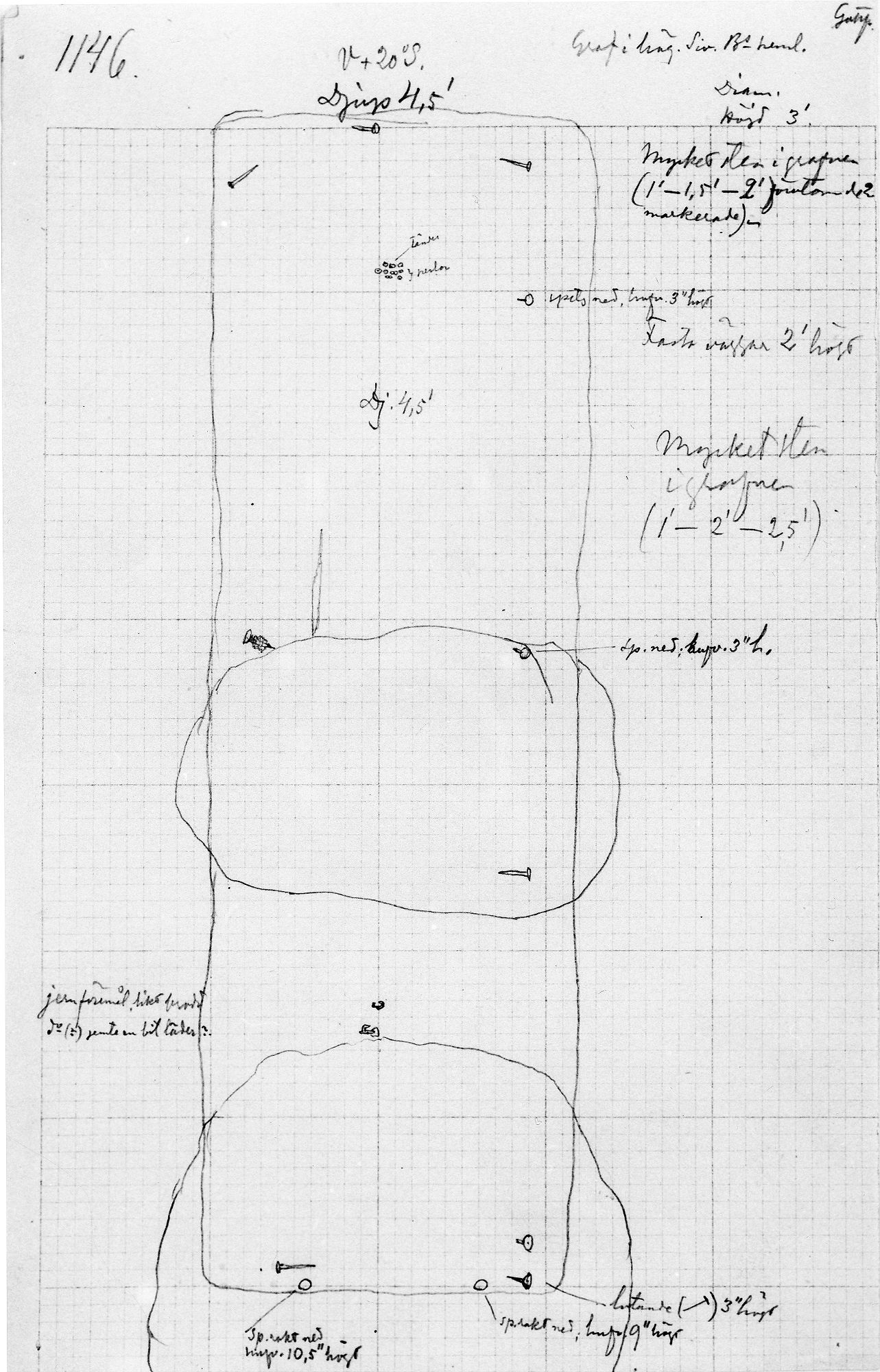 • Inre beskrivning: Grop, 2,1 × 0,7 meter, Djup 1,4 meter (Quelle: SHM MIS)