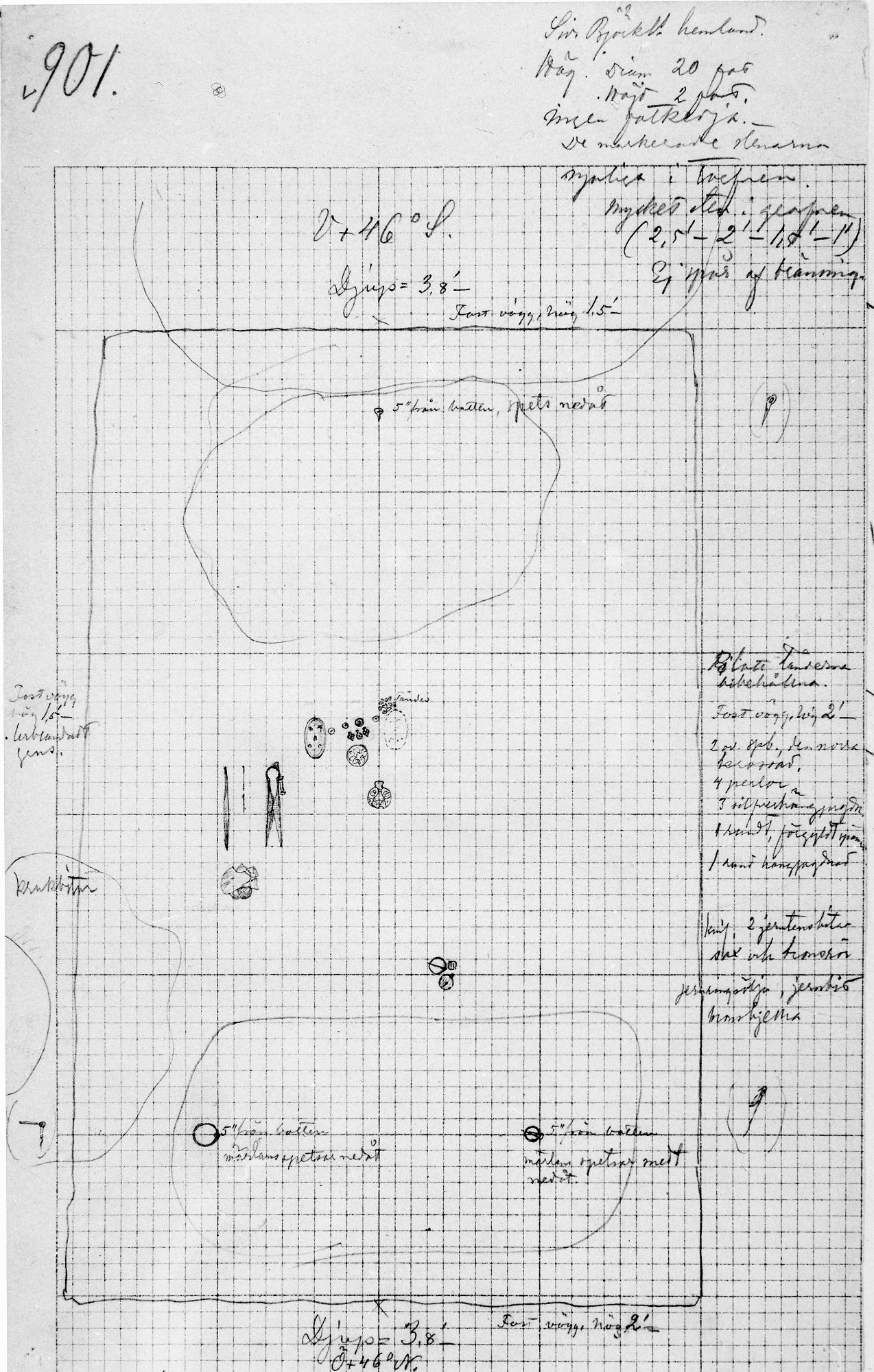 • Inre beskrivning: Kammare, 1,8 × 1,2 meter, Djup 1,2 meter (Quelle: SHM MIS)