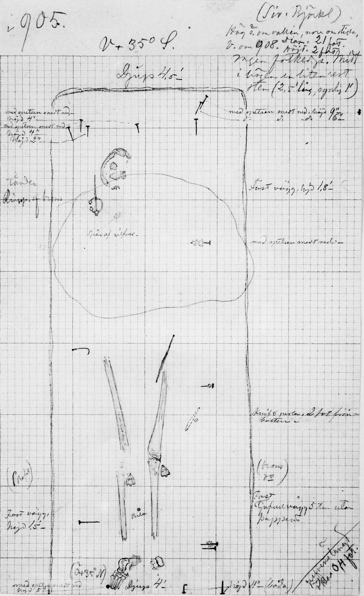 • Inre beskrivning: Grop, 2,3 × 0,8 meter, Djup 1,4 meter (Quelle: SHM MIS)