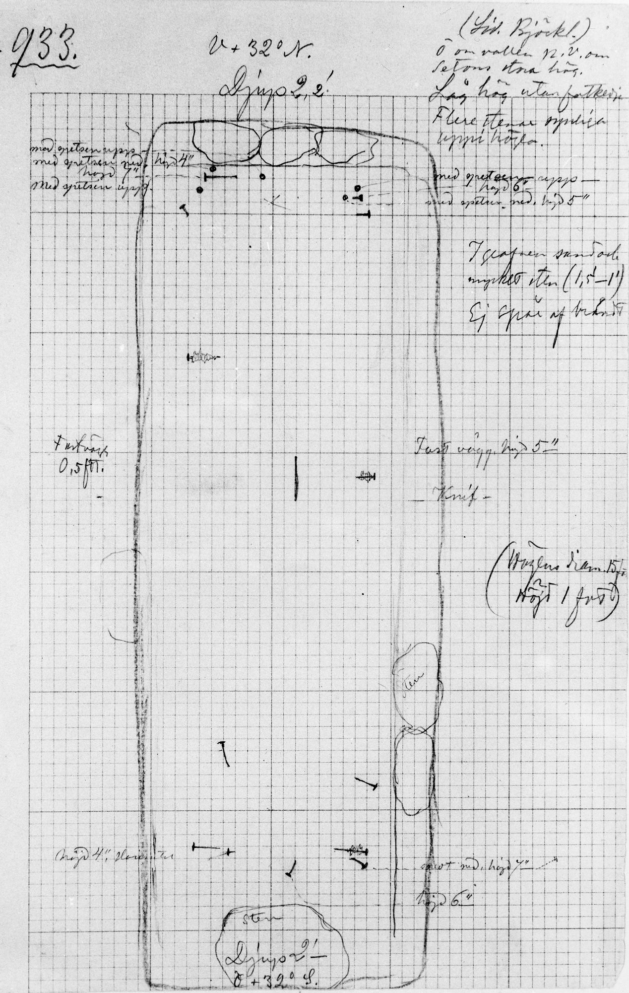 • Inre beskrivning: Grop, 2,2 × 0,8 meter, Djup 0,7 meter (Quelle: SHM MIS)
