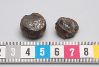 Vikter av järn med spår av bronsbeläggning, skadade (Vikt: 17,1 och 7,6 g.)
