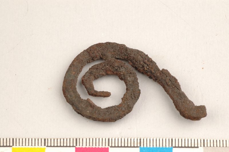 Ten, spiralupplagd, avbruten, med platt fyrsidigt tvärsnitt.