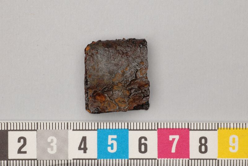 Beslag av tunn plåt. Omböjd, ändarna förendade mad 2 nitar.