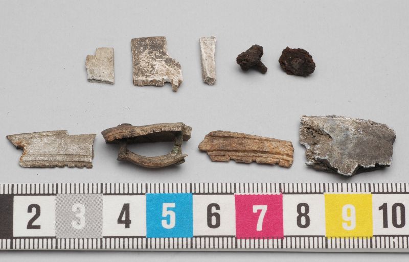 - 1 fragment av stödskena består av 2 ihoplimmade bitar. Typ enligt Ambrosiani 1984:164.