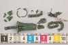 7 fragment från nålhus med kedja, 3 fragment av kedjan och 4 fragment av ringen.