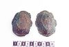 spänne (oval spännbuckla, birkatyp) av brons, järn, textil