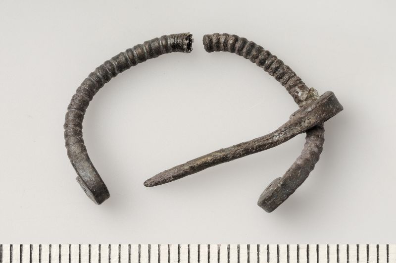 Öppet spänne med upprullade ändarna av räfflad tråd .