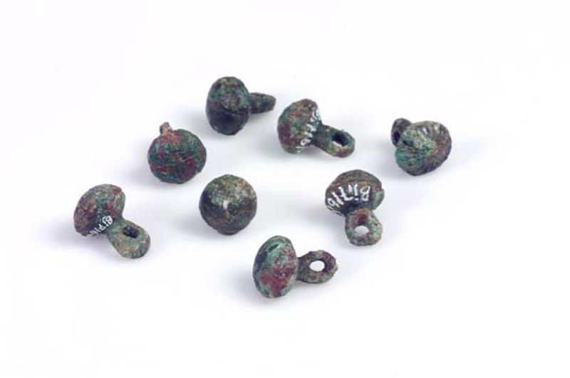 8 gjutna knappar av brons till en kaftan eller svita.