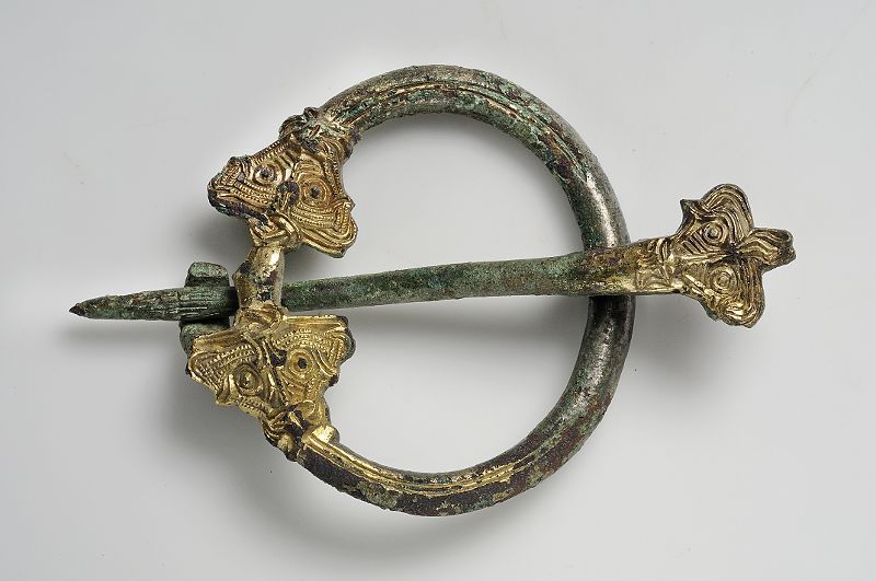 - brooch, ring-headed pin, bronze, copper alloy, white metal, gilded, borrestil