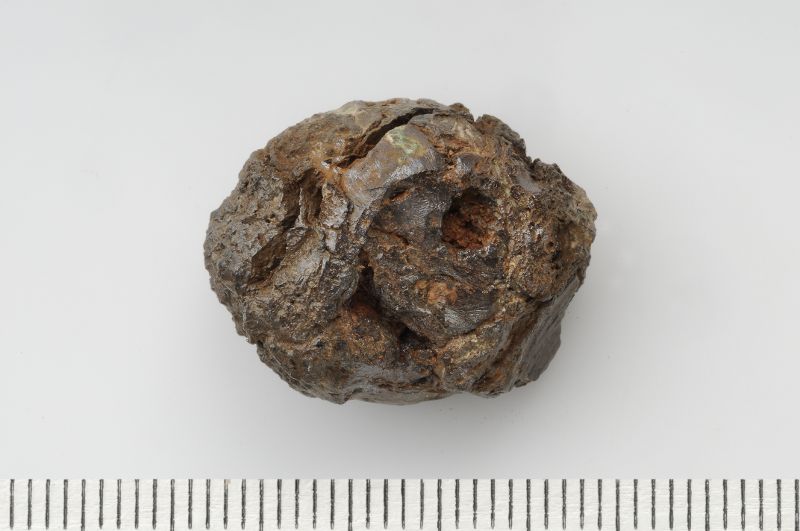 Svårt skadad bipolär järnvikt med rester av bronsering.