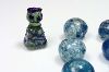 Kung av glas till brädspel. Av grönt glas med blå dekor.