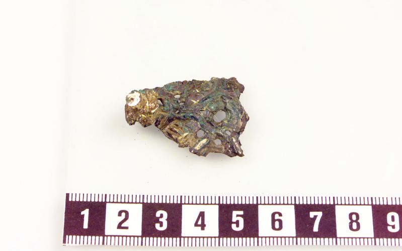 spänne (oval spännbuckla, p 51) av brons, förgyllning