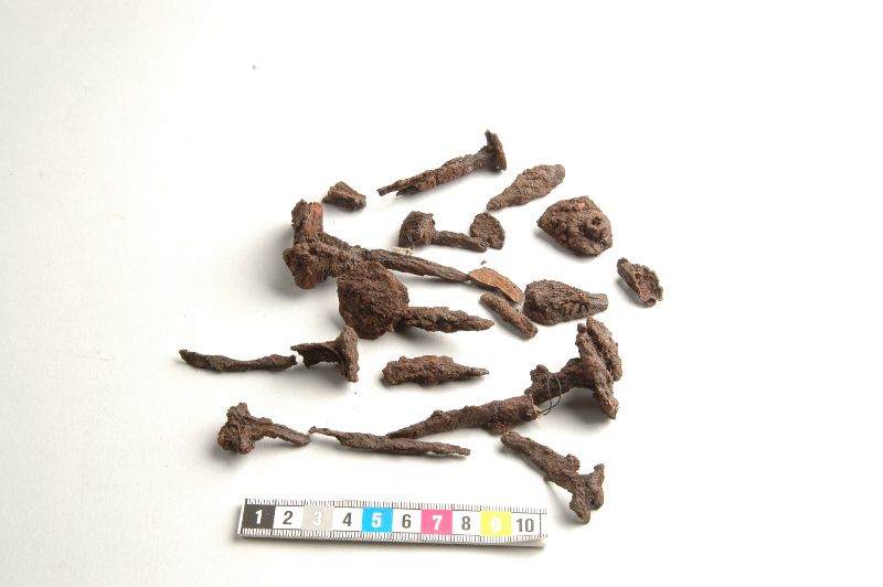 24 fragment av kistspikar - ev kan delar av andra föremål finnas bland fragmenten.