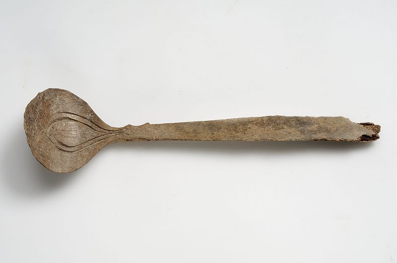 Något vittrad sked av benhorn.