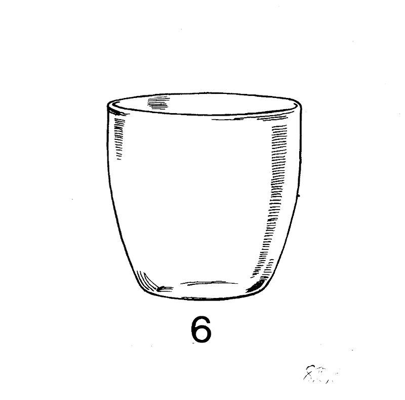 Cylindrisk flatbottnad bägare av ytterst tunt, ljusgrönt odekorerat glas.