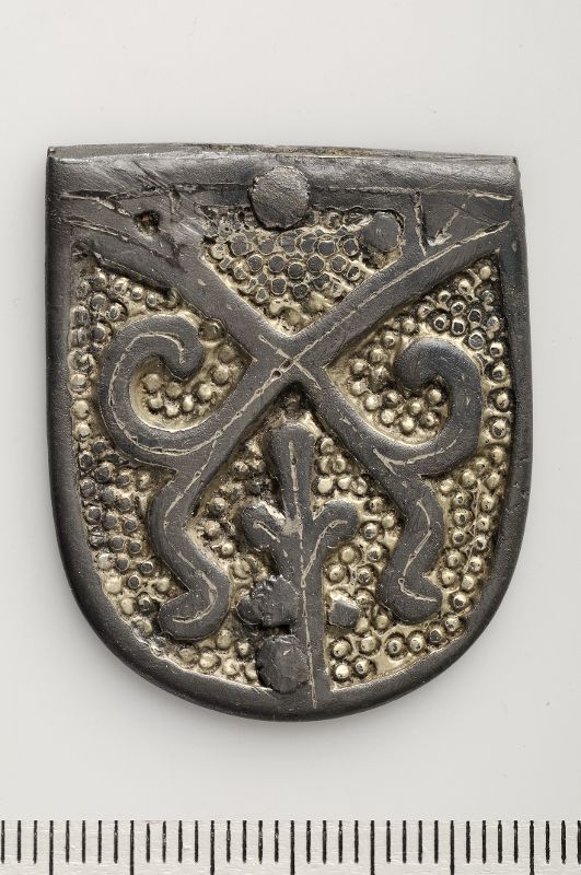 - brooch, strap-end mounting, gilded