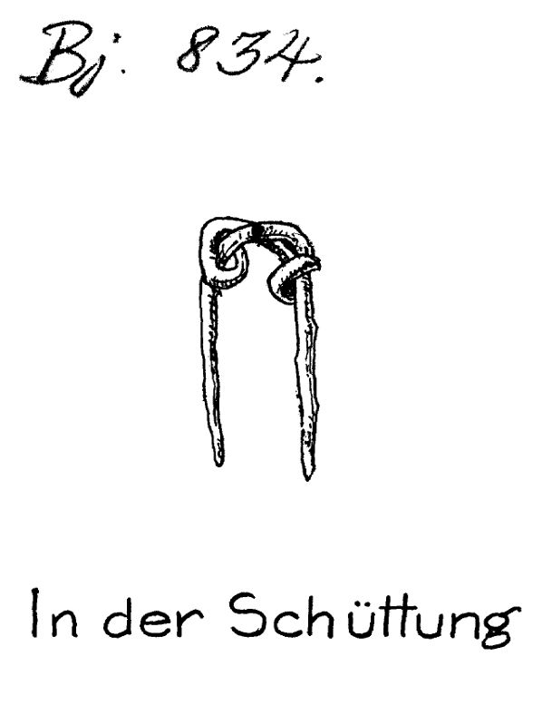 - Återfunnen i gravfyllningen. Jmf. Birka I, Abb. "In der Schuttung".