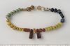2 bärnstenshängen och 25 pärlor - 1 av karneol, 3 av bärnsten, övriga glas.