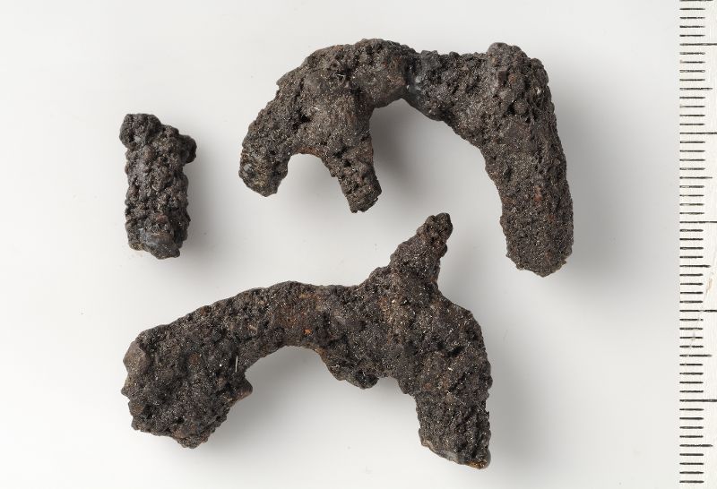 Hårt korroderat och sönderfallet ringspänne av järn.