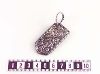 Remändebeslag omgjort till hänge. Nätliknande växtmönster med rovfågel och en uv. Orientalisk typ. Troligen tillverkat i khazariskt eller volgabulgariskt område.