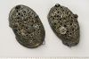 - brooch, tortoise brooch, bronze, copper alloy, iron, textile, white metal, gilded