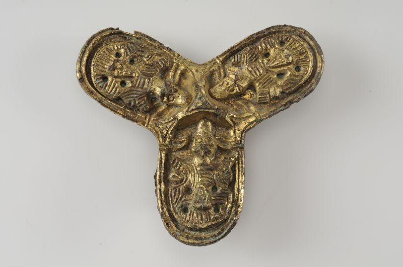 - brooch, threefoil brooch, bronze, copper alloy, gilded