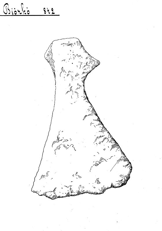 - Återfunnen i gravfyllningen. Jmf. Birka I, Taf. 14:6.