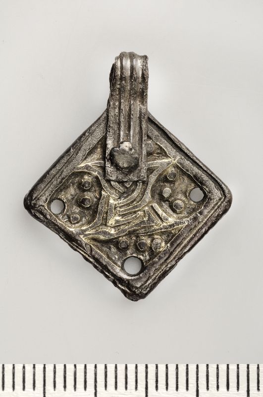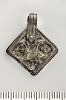 Fyrkantigt silverhänge av 1 omgjort silverbeslag med pånitad hängögla.