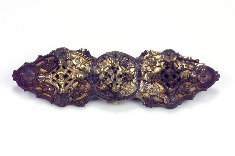 Stort likarmat spänne av förgylld brons.