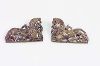 2 hästformade spännen - urspr. beslag vilka försetts med nålanordningar. Ögon av inlagda granater.