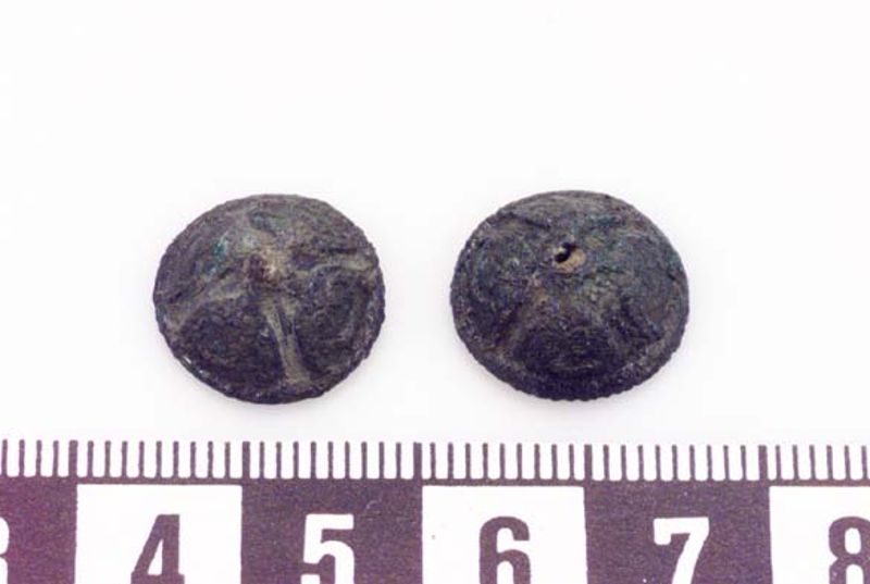Knapp eller pärla bestående av 2 nu itufallna delar.