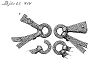 4 fragmentariska remdelare av järn - möjligen från ett huvudlag.