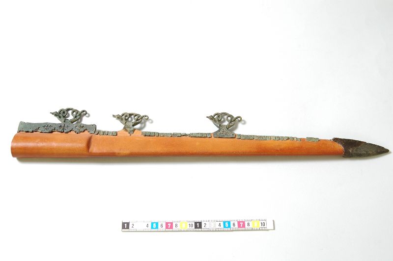 - scabbard, weapon knife, weapon knife scabbard, bronze, copper alloy, leather