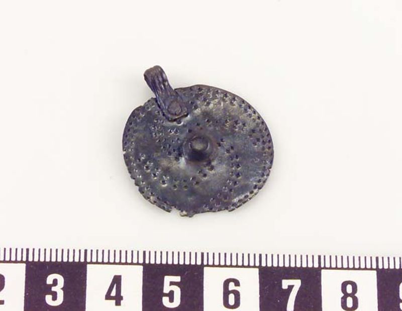 - pendant, shield-shaped pendant, bronze, copper alloy