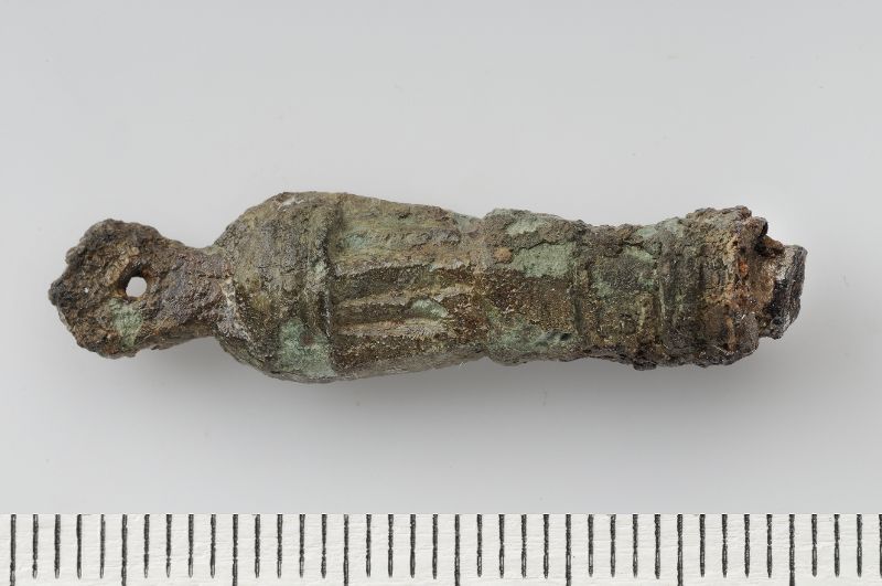 Skadad järnnål med överfångsgjutet bronshuvud.