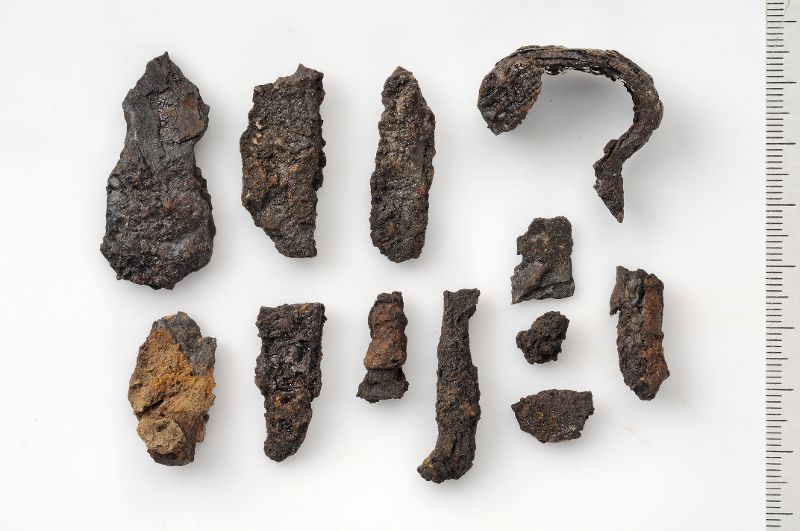- Ev. Kan 1 av fragmenten härröra från annat föremål (sköldbuckla?).