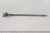 Nål/dräktnål av brons med bärring av järn. På den senare finns textilrester.