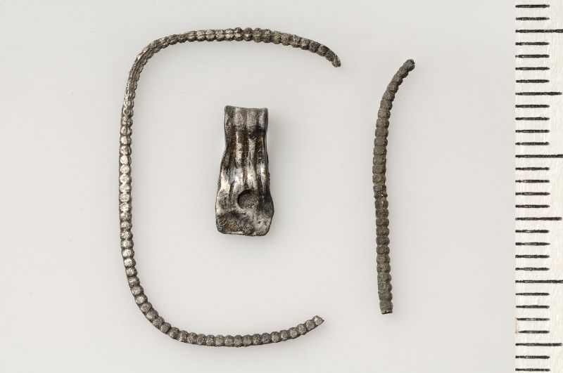 - påträffades vid uppordning i mars 2009 i ask tillsammans med hänge Bj 965, men tillhör troligen inte detta fyndnummer