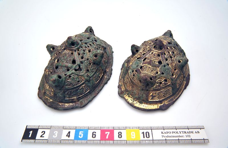 - brooch, tortoise brooch, bronze, copper alloy, iron, gilded