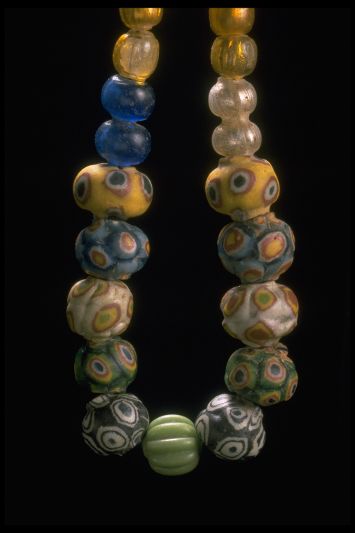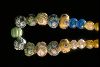 26 pärlor av glas, en del av dem är segmenterade guldfoliepärlor.