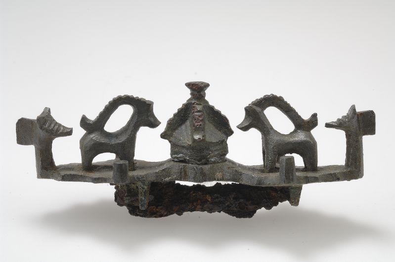 - brooch, equal-armed brooch, bronze, copper alloy, iron, textile