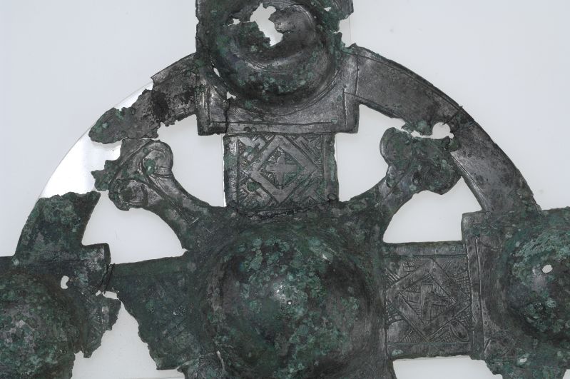 Ett iriskt dräktkorset av bronsbleck med graverad dekor, belagt med tenn.