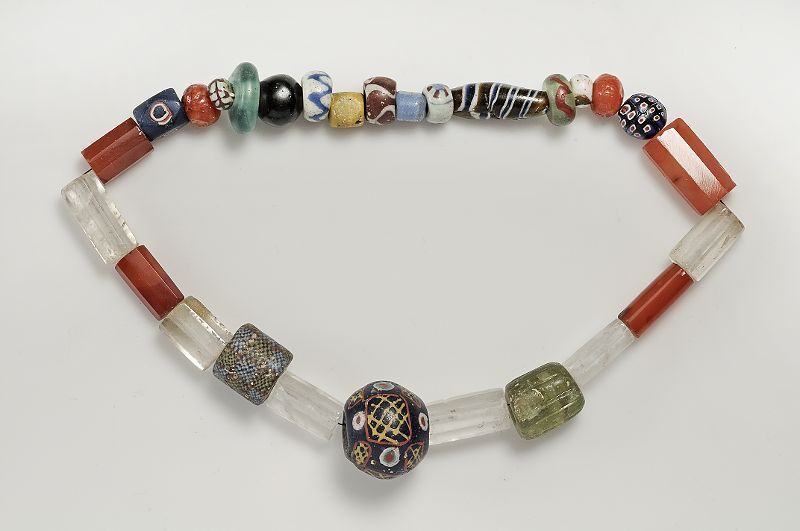 - Uppträdda på tråden med pärlor av karneol och bergkristall.