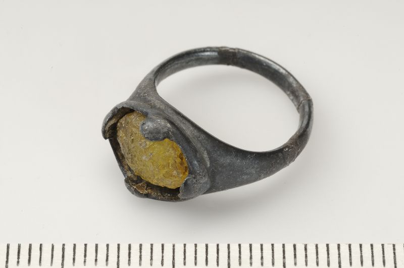 Fingerring med infattad glas.