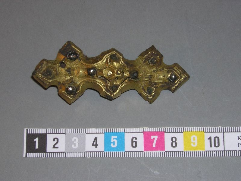 - brooch, equal-armed brooch, bronze, copper alloy, iron, gilded