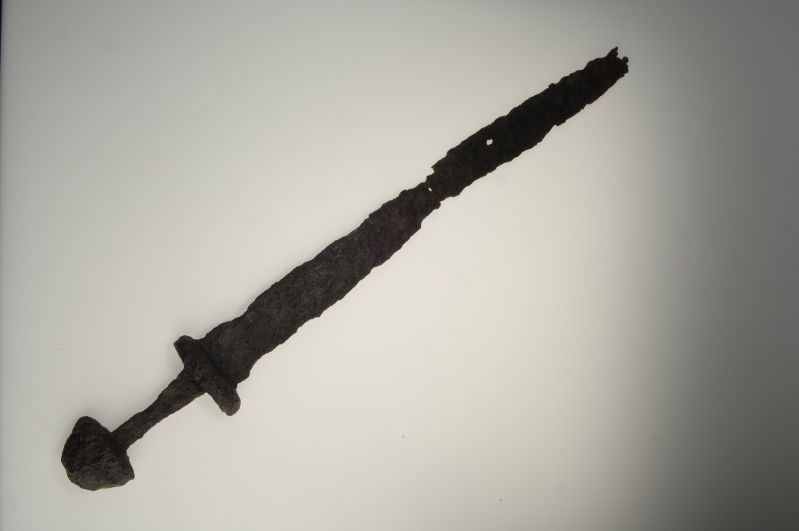 Tveeggat svärd i två delar. Klingans spets är borta.