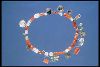 35 pärlor uppträdda enligt Stolpes fyndplan. 24 karneol, 11 bergkristall.