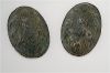 2 ovala spännbucklor av typ P 37 med järnnålar och textilavtryck. På nålarna finns fossilerade textilrester.